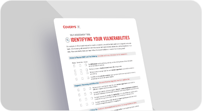 ( 17 ) | HIDDEN IN PLAIN SIGHT | Exposing the Drivers of Diagnostic Error A DOSE OF INSIGHT ® Coverys | SELF-ASSESSMENT TOOL IDENTIFYING YOUR VULNERABILITIES Our analysis of office-based malpractice events uncovered vulnerabilities that contribute to diagnostic error and harm. The following self-assessment identifies crucial best practices that address the contributing factors in our data. How consistently does your team follow the recommendations in each of the following areas? Diagnostic Processing and Differential: Robust differential diagnosis, free from cognitive bias. History & Physical (H&P) and Test Ordering: Complete and timely information for full assessment. Our H&P process requires gathering, updating, and documenting relevant clinical information and family history on every visit. We have a process to identify increased cancer risk among patients. We have access to and optimized the use of decision support tools to assist with test selection and ordering. Our EHR provides automatic reminders regarding routine health screenings based on nationally accepted guidelines and are updated regularly. Always Sometimes Unsure Test Tracking and Follow Up: Consistent reassessment and escalation for change/decline in status. We have a clear process to follow up on test results, including reporting results to patients and other care providers. Our team has a well-defined process for following up on incidental findings. Test results are made available or communicated to the patient as soon as possible. Our team has a robust process for initiating and following up on referrals. Documentation and Communication: Clearly expressed plan for follow-up communication/next steps. Our team has a process in place to document patient refusal of recommended screening tests. We follow a standard process to document test results that include receipt, communication, and follow-up on test results. We set expectations for follow-up with patients by using health-literacy based communications. We include the patient in the diagnostic process by engaging in shared decision-making and communicating diagnostic uncertainty. We have access to and have optimized the use of decision support tools to assist with the differential diagnostic process and documentation. Our team has a process, such as a diagnostic time out, to ensure all data/input is reviewed and all possibilities/perspectives have been considered in events where diagnostic uncertainty exists. Our team recognizes the potential for cognitive bias to limit the differential diagnosis and is comfortable raising concerns about such pitfalls as anchoring or confirmation bias. Our team members operate within well-defined scope of practice parameters and utilize collaborative/supervisory agreements as appropriate.